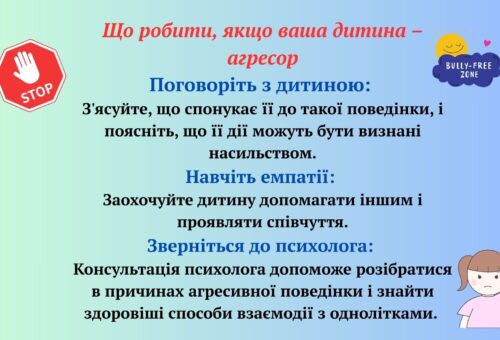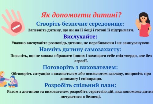 - Ознайомлення педагогів і батьків з інформацією про прояви насильства та його наслідки.